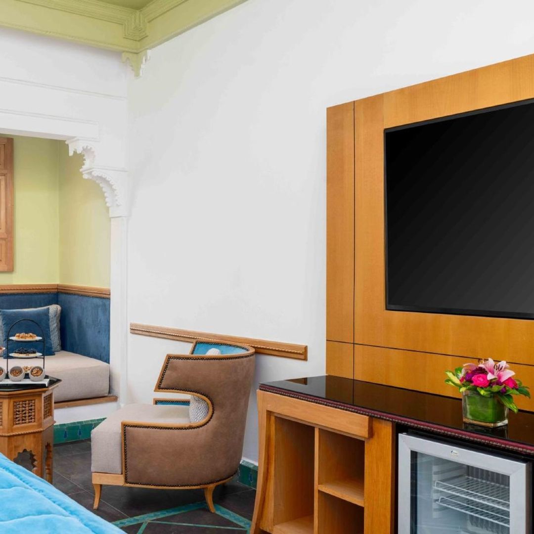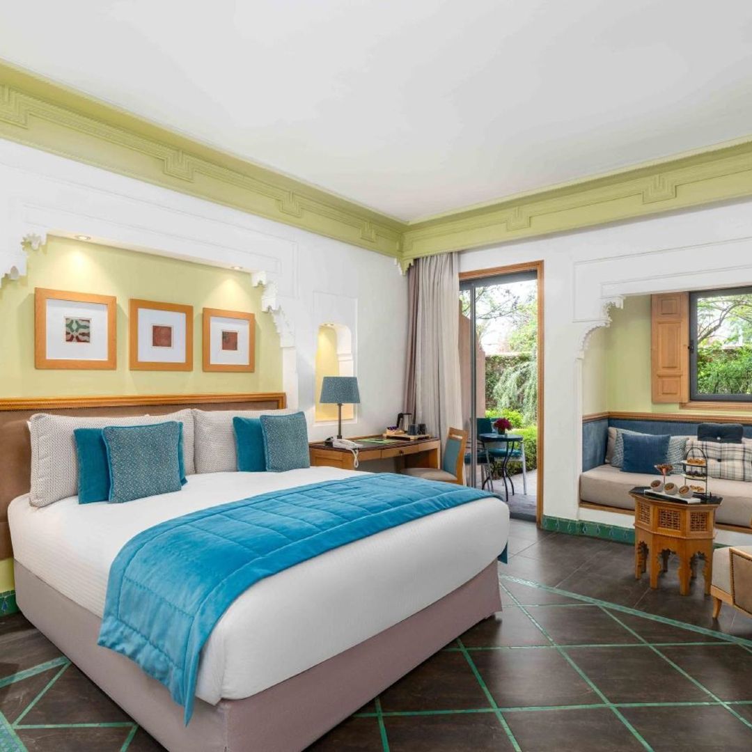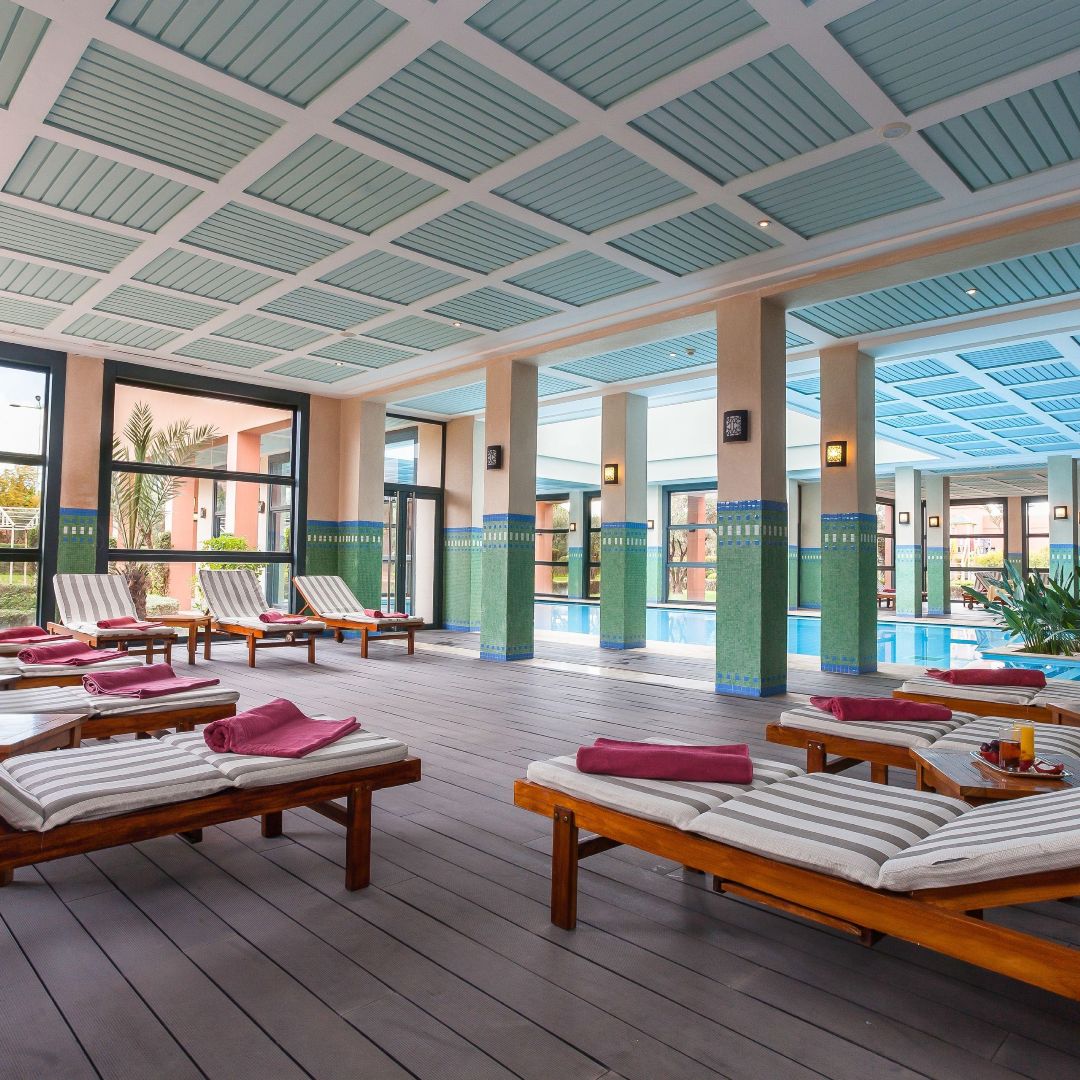 O hotel Jaal Riad Resort Asults Only 5* está localizado no final da Avenida Mohammed VI, no coração de Marrakech, a 10 minutos de carro do Aeroporto Internacional de Marrakech-Menara e da Praça Jemaa el-Fna. Este luxuoso resort urbano dispõe de quartos espaçosos; quatro restaurantes requintados; um bar; duas piscinas, uma ao ar livre e uma piscina interior aquecida; um centro de negócios; salas de reuniões e eventos; um spa de 3.000 m² com tratamentos de beleza, banho turco e serviços de massagem; um ginásio; uma área de fitness com atividades desportivas; um salão de cabeleireiro; uma sala de jogos; uma discoteca; uma sala de TV; oficinas criativas; jardins com solário; uma loja; e uma biblioteca.