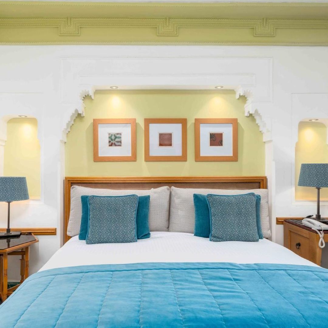 O Quarto Deluxe com Vista para o Jardim tem uma área de 36 m². Está equipado com 1 cama de casal queen-size, banheiro privativo com banheira ou chuveiro e secador de cabelo, área de estar com sofá e mesa, ar-condicionado, aquecimento, TV de tela plana, frigobar, cofre, mesa de trabalho, Wi-Fi gratuito e terraço com vista para o jardim.
